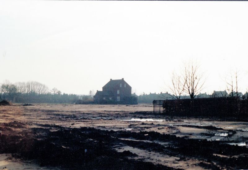 De Kale Plak in Offenbeek wordt gereed gemaakt voor de bouw van een complete nieuwe wijk. In het midden staat eenzaam de kippenfarm van Stinges.
