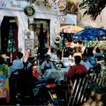 Het gezellige terras bij café restaurant "De Grens" in Offenbeek destijds nog met de winkel ernaast. Eigenaar was destijds Frits Niemans en Maria Dewinden.