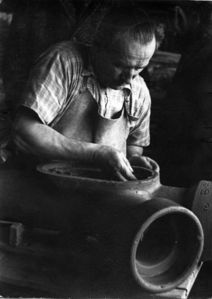 De speciale hulpstukken van de gresbuizen worden met de hand gemaakt.