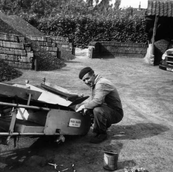 Piet Goossens was de kolenboer van Belfeld. Op de foto repareert hij de lopende band welke gebruikt werd voor het opstapelen van de kolen.
