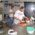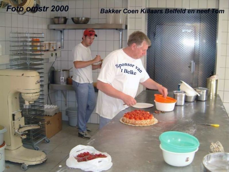 Bakker Coen Killaars en neef Tom Killaars bezig met het maken van vlaaien.