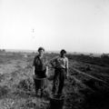 Johanna en Jeu van den Beucken aan het werk op een akker in het Meelderbroek.