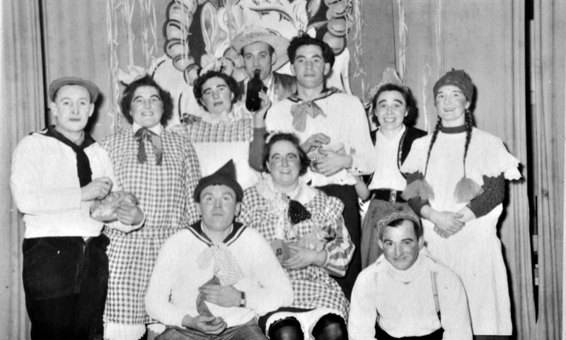 Groepsfoto van een groep carnaval vierende vriendengroep.