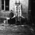 Een varken op de ladder bij de familie Goossens. Het zelf slachten was destijds heel normaal.