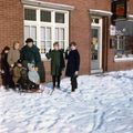 Mevrouw Janzen met haar kinderen (waaronder Yvonne Janzen) voor hun elektrozaak