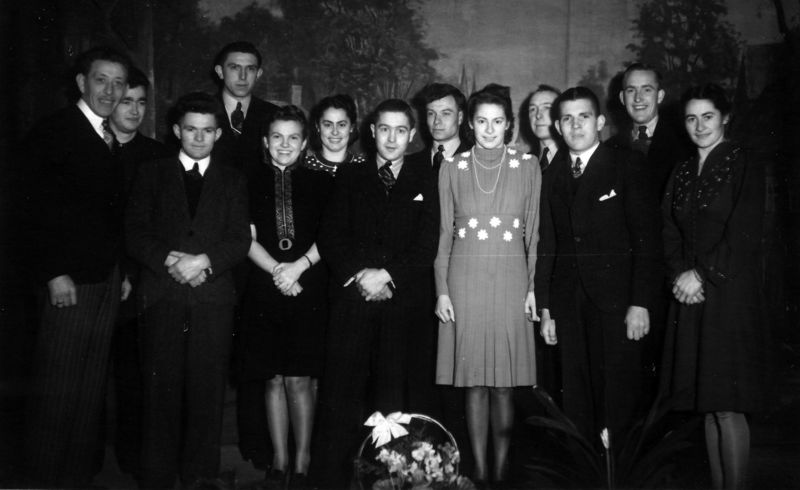 van links naar rechts: 1 Thijs Verdonk, 2 Herm Stroeken, 3 Jan Hoezen, 4 Pierre Spee,5 Wies Hoezen, 6 Bets van de Voort, 7 Sjraar Derks, 8 Pierre Geurts, 9 Lenie van deVoort, 10 Lei Lücker, 11 Theo Hoezen, 12 Thijs Verlaek, 13 Ton van de Voort
