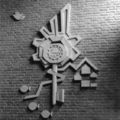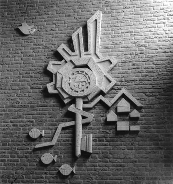 Kunstwerk van T. Simons bij het gebouw van de woningvereniging te Reuver aan de Gouverneur van Hövelllaan.