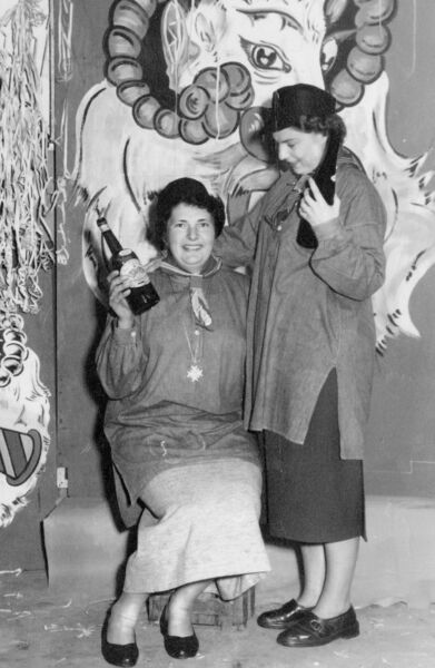 Ook deze dames, Ans Naus - van den Heurik, vrouw van Jan Naus en Gerda Naus - Beurskens, vrouw van Bert Naus vieren samen carnaval.