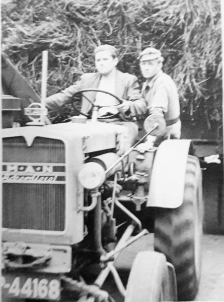 Met de M.A.N tractor de oogst binnenhalen.