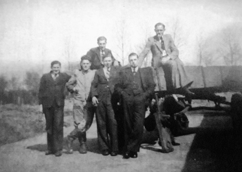 De medewerkers van de paters in hun zondagspak op kar.
