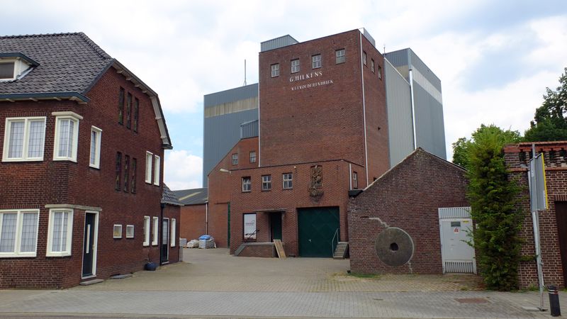 Historie: Het gebied waar het bedrijf ligt heette vroeger Kruiskamp In de jaren 1872-1873 werd er koren- en oliemolen gebouwd in opdracht van Leonard Theelen, koopman en landbouwer in Swalmen. Theelen kocht daarvoor in 1872 een perceel bouwland op het kruiskamp van de landbouwer Willem Geraedts. 1885 Bij boedelscheiding in 1885 werd Mathijs Theelen, molenaar in Swalmen eigenaar. In hetzelfde jaar bouwde hij bij de windmolen een stoommolen en in 1891 een werkhuis. 1894 Judocas Joosten en Louis Joosten uit Weert nemen de molen over en beginnen een graanhandel. 1898 Peter Mathis Adams uit Herten neemt de zaak over en samen met Jean Willem Adams en vormen ze een consortium. 1913 Renier Adams neemt de zaak over samen met Gertruda Huberta Maessen. Samen met zijn zus Elisabeth Adams en haar echtgenoot Cornelis Op den Camp, zijn zus Maria Adams en haar echtgenoot John Niessen vormen ze een consortium waarbij ze elk voor 1/6 deel eigenaar zijn. 1937 Johannes Franciscus Georges Hilkens (geb. 24-3-1903) neemt de zaak over. Hilkens zette na korte tijd de windmolen stil. In 1938 werd de eerste roede gestreken en in 1939 volgde de tweede roede. De romp werd daarna ontdaan van de kap, de staart en het binnenwerk, om plaats te maken voor de bouw van houten silo's. Als zodanig bleef deze opslagruimte voor het malen van veevoer met een hamermolen tot 1959 in gebruik. Wegens bedrijfsuitbreiding werd de romp in 1960 afgebroken. Het bedrijf nam in de loop der jaren in omvang toe tot een florerende veevoederfabriek 1977 Johannes Hubertus Gregorius Bernardinus Hilkens (Geb. 22-5-1941) neemt de zaak over van zijn vader. 2??? de derde generatie Hilkens, J. Hilkens, doet zijn entree.