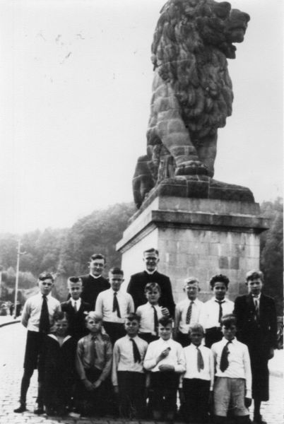 Van links naar rechts: achterste rij: 1 kapelaan Geurts, 2 kapelaan Rijnders middelste rij: 1 Herman Heldens, 2 Leenen, 3 Lambert Augustus, 4 Gerrit Janssen, 5 Sjra Giesen, 6 Fons Thijssen, 7 Hub Betteray. voorste rij: 1 Pierre Beurskens, 2 Eugène op 't Root, 3 Cor Augustus, 4 Giesen, 5 Martien v.d. Avoort