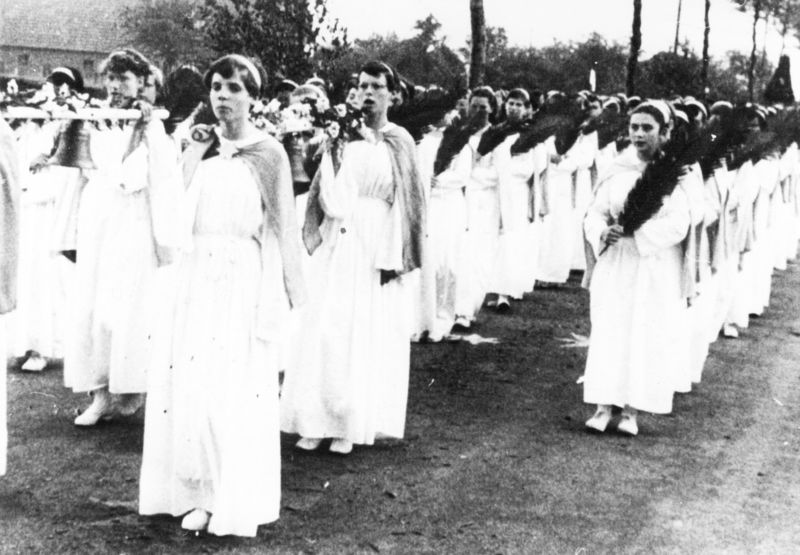 Het Mariabeeld van de Sterre der Zee werd door de inwoners van Beesel naar de grens met Reuver gebracht. Reuverse meisjes nemen het beeld over en brengen dit naar de Sint Lambertuskerk.