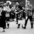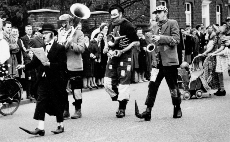 Dreeske Ottenheim, NN, Jan van de Sterren en Sjra Smeets tijdens de caranavalsoptocht.