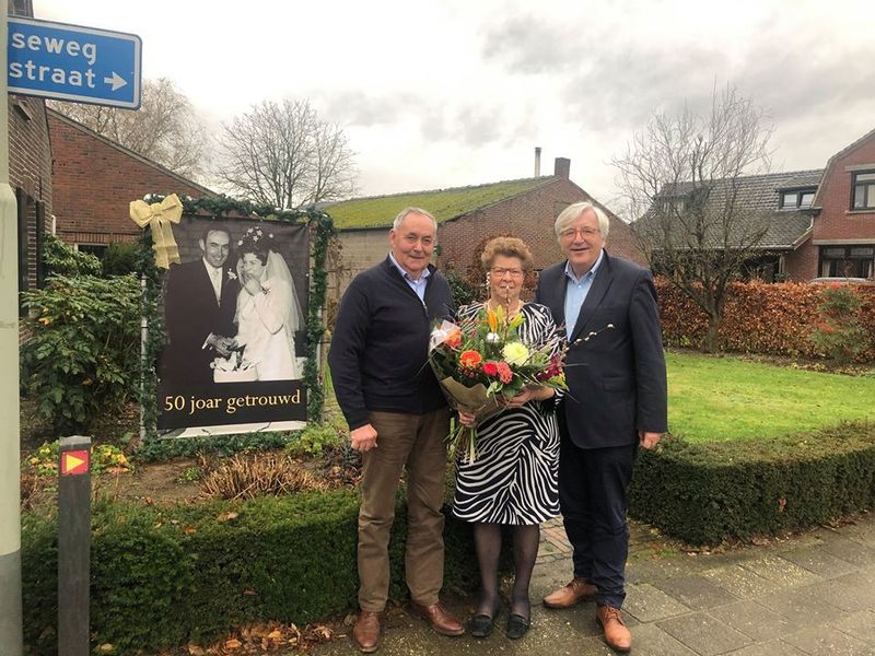 Het echtpaar Jo en Lenie Stroucken - van Rijswick viert haar 50-jarig huwelijksjubileum. Waarnemend burgemeester Wil Rutten ging bij hen langs met een bloemetje.