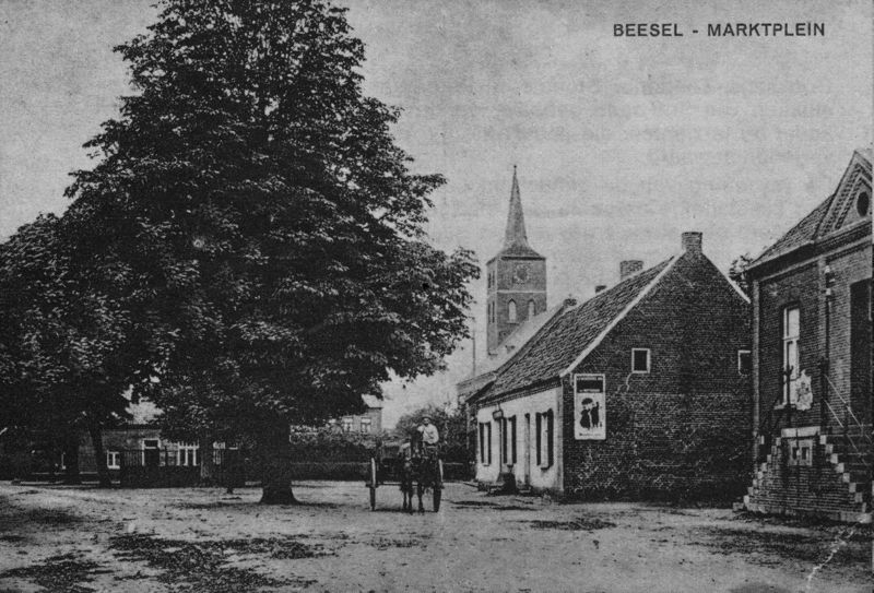 Een prentbriefkaart met hierop het marktplein in Beesel.