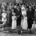 Op de foto zien we van links naar rechts: Bovenste rij: 1 Ans Theunissen, 2 J. Broeders, 3 Julia Theunissen, 4 Haike Killaars, 5 Hans Bollen , 6 Tilla Theunissen, 7 Theo Niemans, 8 Maria Peulen, 9 Piërre Theunissen, 10 L. Broeders , 11 Huub Theunissen, 12 Tila Langen 13 Hein Theunissen 14 F. Broeders, 15 Broeders ? 2de rij: 1 Wiel Killaars, 2 Marie Killaars - Theunissen, 3 Heinie Theunissen, 4 Drees Teunissen, 5 Anneke Theunissen - Hovens, 6 Karel Theunissen, 7 Heinie Theunissen, 8 Nellie Theunissen - Weber, 9 Triena Veldman - Theunissen, 10 Piet Veldman, 11 Graddie Veldman. Voorste rij: 1 Lienie Veldman, 2 Mevr. Peulen, 3 Caroline Theunissen - Faltijn, 4 Kittie Veldman, 5 Anton Broeders (bruidegom), 6 Lien Theunissen (bruid), 7 Lienie Killaars , 8 Heinke Theunissen, 9 Hay Veldman, 10 Jeu Theunissen, 11 Gerrit Veldman. Vooraan op de grond zittend: links Johanna Theunissen en rechts Ben Killaars.