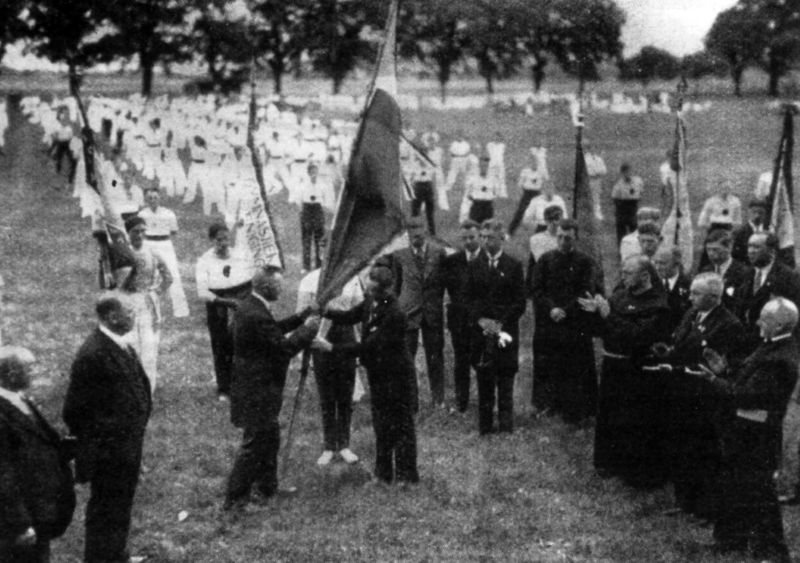 In 1934 werd op een terrein tegenover Bergerhof het 22e bondsfeest van de R.K. Gymnastiek-en Athletiekbond in het bisdom Roermond gehouden. Het was nog een uitvloeisel van het 30-jarig bestaan in 1933. In de gevel van de boerderij bevindt zich nog een gedenksteen, die herinnert aan dat feest. Ook op dat feest was mgr. Lemmens aanwezig. Het vaandel wordt overhandigd door de voorzitter van Hercules: J. Vroemen (links). In het midden leden van het bestuur van Hercules: M. Korsten, K. Custers en de geestelijk adviseur: V. Lemmens. 29 Verenigingen uit Limburg namen er aan deel.