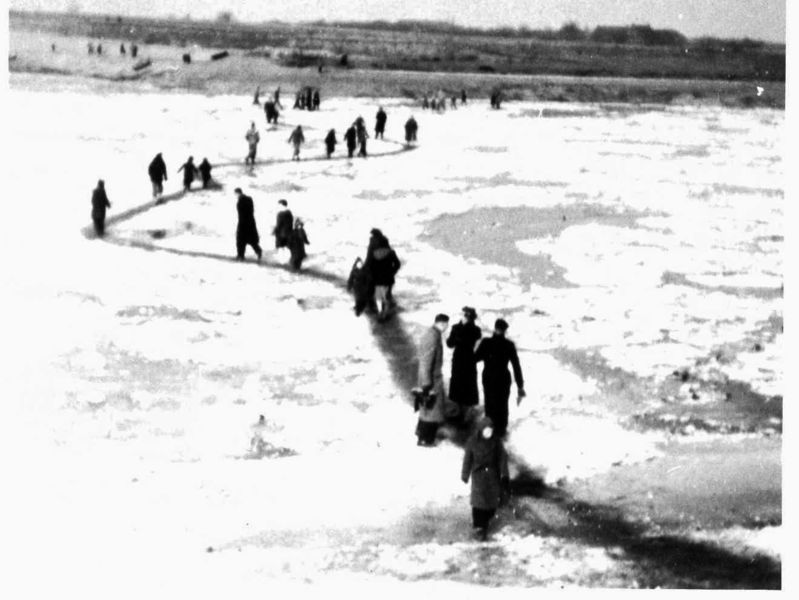 In februari 1954 vroor de Maas dicht. Bij Muisers aan de Maas werd met as een weg uitgezet over de Maas.