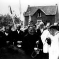 Op 29 juni 1958 werd P. van de Broek geïnstalleerd als pastoor van Reuver. Hij ontvangt hier de sleutel van de deur van de kerk van kapelaan M. Ramaekers. Links deken G. Stoot, die de herdersstaf mag vasthouden. Naast hem Lei Peeters (kerkmeester). Rechts burgemeester Claessen en de rector van Offenbeek.