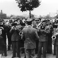 Een serenade door het Philharmonisch gezelschap in de tuin van de huishoudschool.