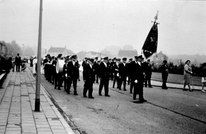 Laatste processie oude stijl. Oude Baan ter hoogte van Schinheuvel. De eerstvolgende processie was in 1984.