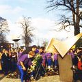 5 mei 1995. 50 jaar bevrijding. Onthulling van het monument voor het station. Burgemeester Ritzen plaatst een krans. Achter hem Jo v.d. Wielen, gemeenteambtenaar in Beesel.
