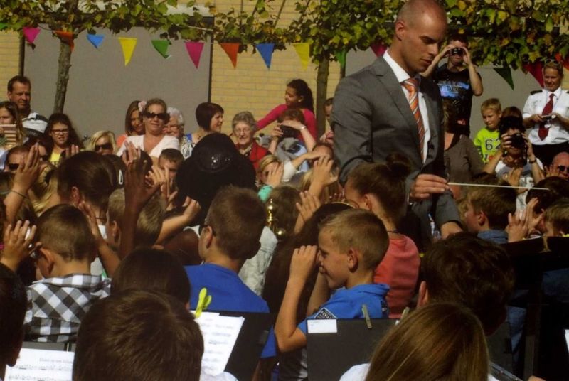 In 2014 gaven het Philharmonisch Gezelschap en het Trommel-en Fluiterkorps St. Barbara een uitvoering, waarbij het de bedoeling was zoveel mogelijk schooljeugd daarbij te betrekken en kennis te laten maken met muziek. “Muziek is Sjiek”heette het. We zien hier ook Frans Bemelmans, de nieuwe dirigent van de Philharmonie, bij zijn eerste optreden.