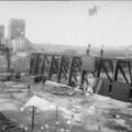 Stellen van de onderschuiven bij de bouw van de stuw in Belfeld.