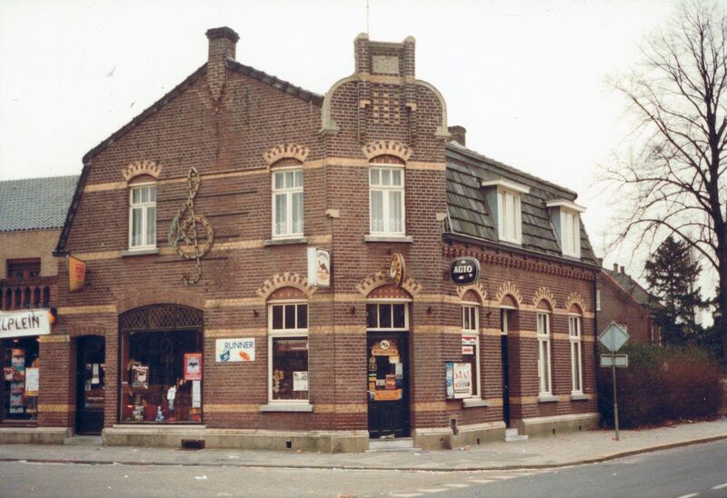 De woning/winkel van Piet en Emiel Julicher op de hoek Pastoor Vranckenlaan - Raadhuisplein. Piet had er eerst een elektrozaak / tabakswinkel en Emiel breidde de winkel uit met een platenzaak. De woning werd afgebroken om plaats te maken voor het gemeentehuis.