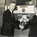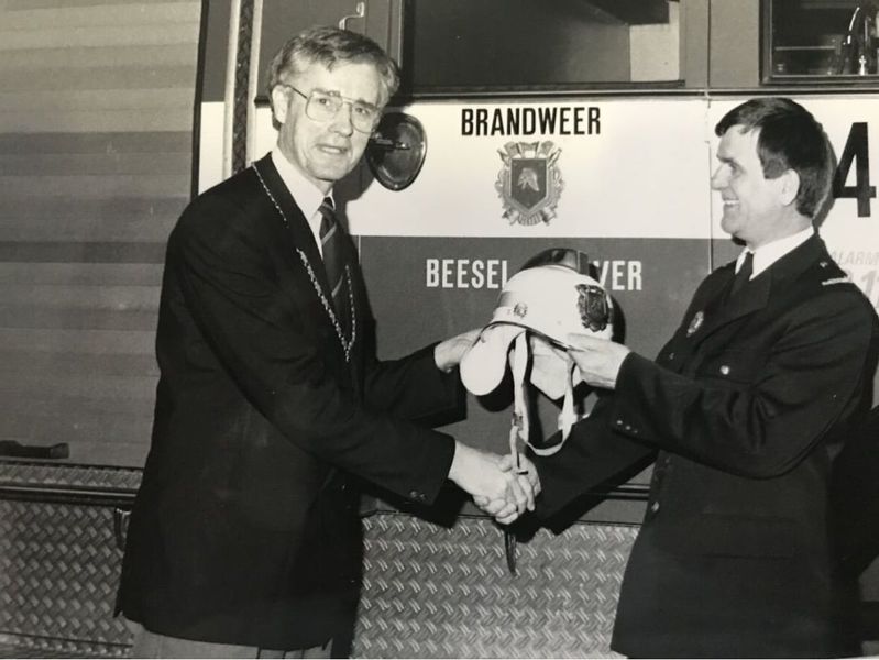 Burgemeester Nuytens en Cor Crommentijn tijdens de commando overdracht van de brandweer van de Gemeente Beesel