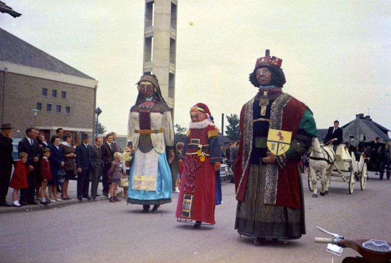 De reuzen van Offenbeek die trokken mee met de schutterij in de zestiger jaren tijdens het schuttersfeest. Ze werden ontworpen en gemaakt door Ella Sliedrecht, een plaatselijke kunstenares.