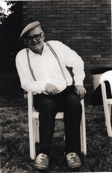 Hubertus (Baer) Franssen (Baer van Keun) voor zijn huis aan de Offenbekermarkt.