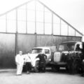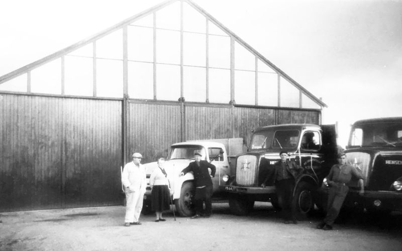 De familie Dewinden staat voor hun vrachtwagens.