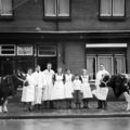 Van links naar rechts : 1 Mevrouw Ruyten, 2 NN, 3 NN, 4 NN, 5 NN, 6 Huub Ruyten, 7 NN, 8 Meneer Ruyten