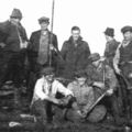 Zij werkten in de bossen en bewerkten boomstammen om te gebruiken als stutten in de mijngangen. Op de foto: links wijdbeens vader Fried Schoeren (Sjoeres-Fried), zoon Wiel Schoeren staand rechts met bijl, zoon Coen Schoeren zittend midden op de foto. De man staand midden op de foto is vermoedelijk de opzichter. De overige mannen zijn waarschijnlijk afkomstig uit Swalmen.