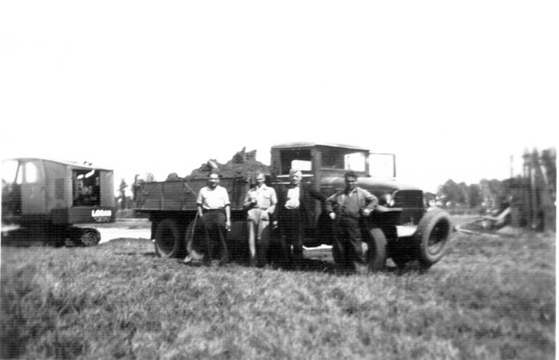 Een vrachtwagen van vrachtbedrijf Steeghs met medewerkers Sjeng en Joep Goertz