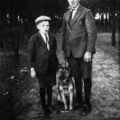 Onbekend vader en zoon samen met hun hond.