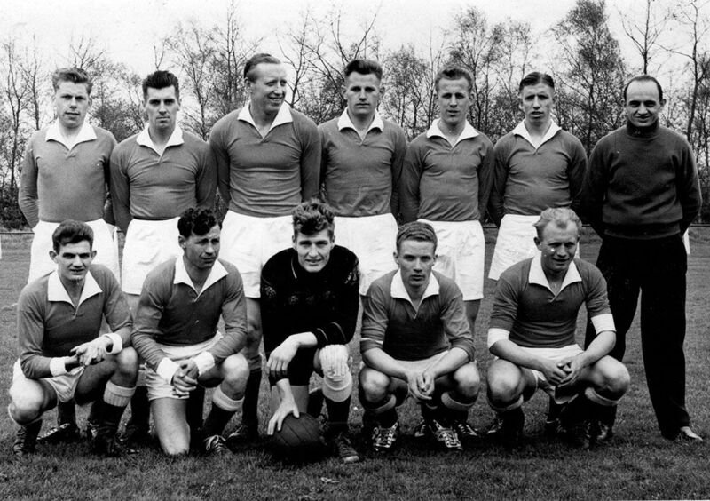 Van links naar rechts: staande: 1. Jeu Dorssers, 2. Jan Hendriks, 3. Joep Gommans, 4. Jos Houwers., 5. Frans Vullers, 6 Jan Rutten, 7Jan Denessen. Hurkend: 1. Piet Smeets, 2. Wiel Ottenheim , 3. Piet Wijnands, 4. Wijnand Puts, 5.Wiel Kuipers