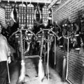 Dhr. Goossens met zijn kostbare collectie paardenhamen.