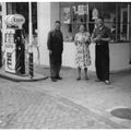 Harrie Dohmen en zijn echtgenote Annie Dohmen - vd Werf samen met Eduard voor hun winkel / tankstation aan de Rijksweg
