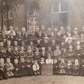Van 1 van de leerlingen is nu in ieder geval de naam bekend, dat is die van mijn vader Jan Breuker (in Reuver werd de familie Breuker ook wel “Breukers” genoemd met een s. Misschien dat mijn vader bekender was onder de naam: Jan van Breukers. Hij staat op de foto met een kruisje op zijn borst. Hij is geboren op 3-2-1914. Als hij op de foto een jaar of 8 à 10 is, dan zou de foto tussen 1922 en 1924 gemaakt zijn. Zijn schoolvriend heette Harrie Hermans. Die woonde ook aan de Rijksweg Noord. Een meter of 50 ten noorden van café PAAR.