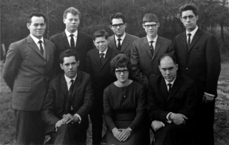 Van links naar rechts; voorste rij: 1 Sjaak, 2 Fien, 3 Piere? achterste rij: 1 Pierre, 2 Baer, 3 Ger, 4 Toon, 5 Ernst , 6 Jan