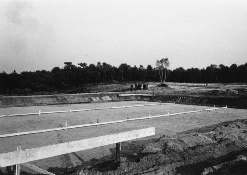 Zwembad De Bercken: de bouw van 1 oktober 1965 tot 20 juni 1966. Zandbedding gereed voor aanbrengen van betonnen bassin vloer.