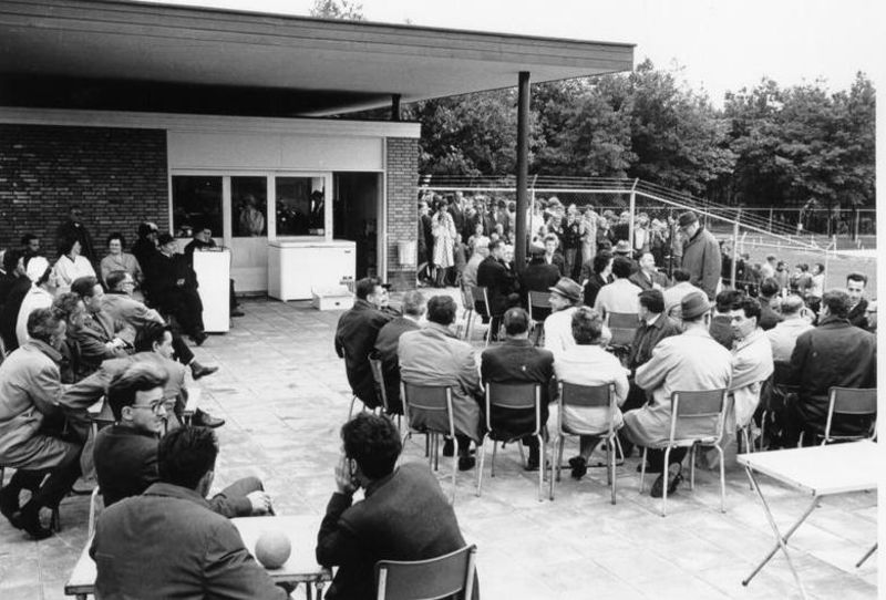Zwembad De Berkcken: de opening- het was bepaald geen zwemweer, jassen waren onontbeerlijk.