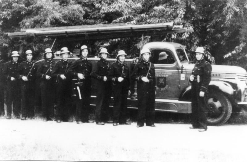 Brandweer oude wagen. 1: Lex Nelissen 2: J. v. Neer 3: J. Heinen 4: Frans Wijnands 5: Theike Smets 6: Jan v. de Heuvel 7: Dre Fleuren 8: Cor Wijnands 9: Piet Heldens 10: Frans Peeters