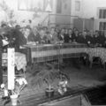 Harmonie St. Gertrudis. T.g.v. het behalen van de 1e prijs door de Harmonie werd het gezelschap door de bevolking gehuldigd. Pastoor de Winter tijdens zijn toespraak.