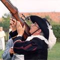 Leden van de Schutterij Beesel oefenen op hun schietterrein.