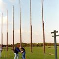 Beeld van het OLS in Reuver. De leden van de schutterij Sint Barbara zet de schietpalen gereed.