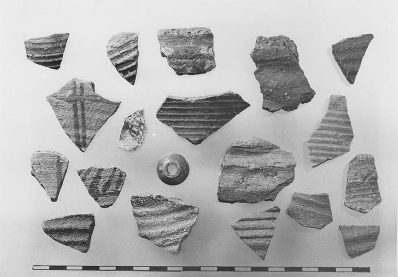 Aardewerkscherven uit de middeleeuwen gevonden op de akker door Loe Giesen nabij de vroegere boerderij Hof tot Lewen.